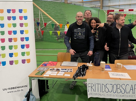 Mange lokale aktører var mødt op, og der var dans, sang, mad, kreativitet mm. Vores kollegaer Sarah og Daniel, som ses på det dejlige billede sammen med Flemming fra BBU Amager samt Mads og Tomas fra BIF/JKU - fritidsjob og lærepladsindsatsen, deltog også bl.a. med karrierespil med nogle af de fremmødte børn.